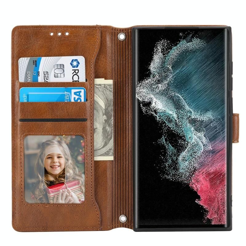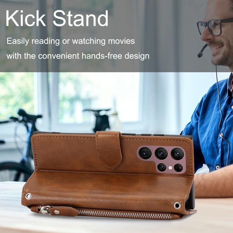 Για Samsung Galaxy S23 Ultra 5G Oil Skin φερμουάρ πορτοφόλι δερμάτινη θήκη τηλεφώνου (καφέ)