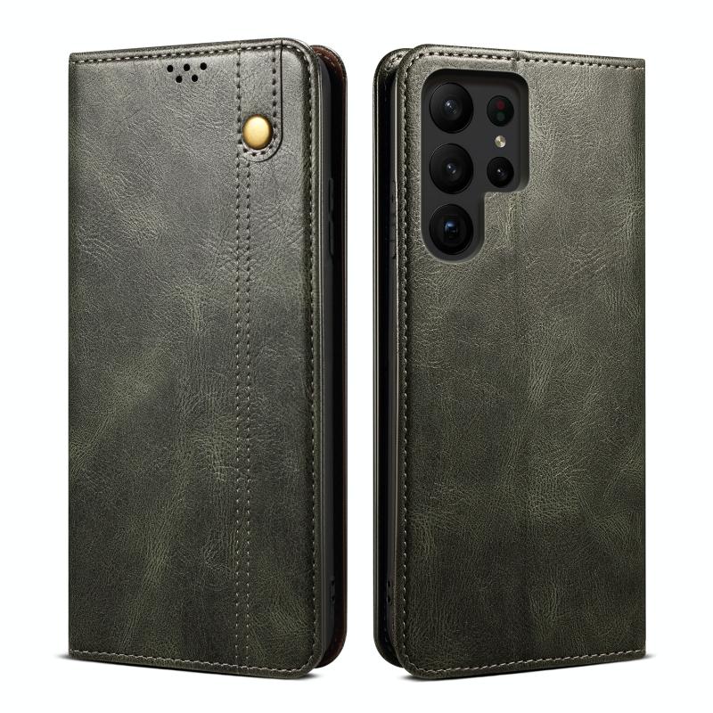 Θήκη τηλεφώνου Samsung Galaxy S23 Ultra 5G από δέρμα με υφή Oil Wax Crazy Horse (πράσινο)