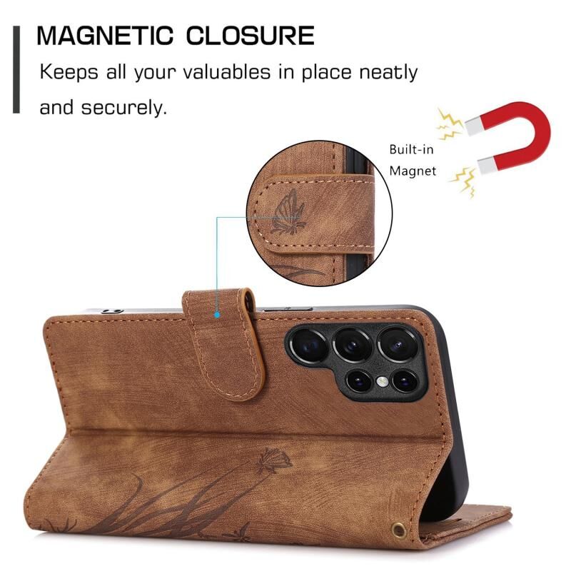 For Samsung Galaxy S23 Ultra 5G Orchid Butterfly Embossed Leather Phone Case(Brown)