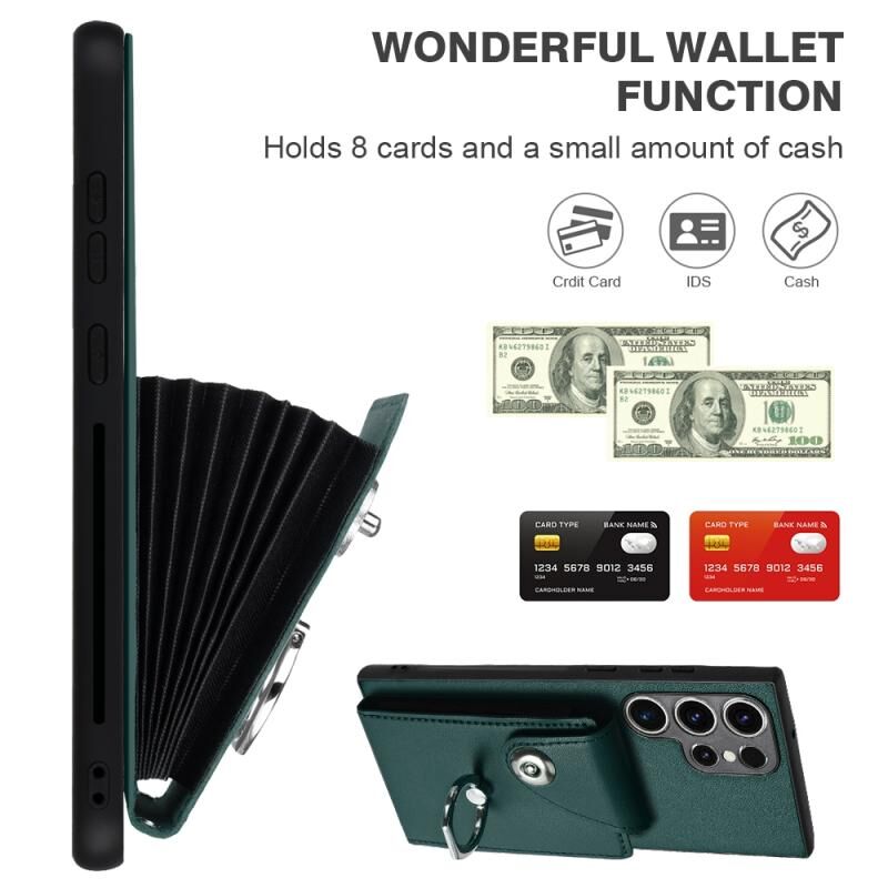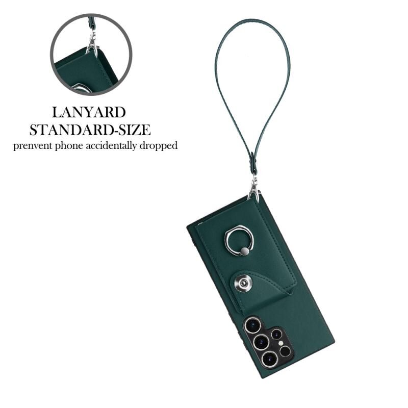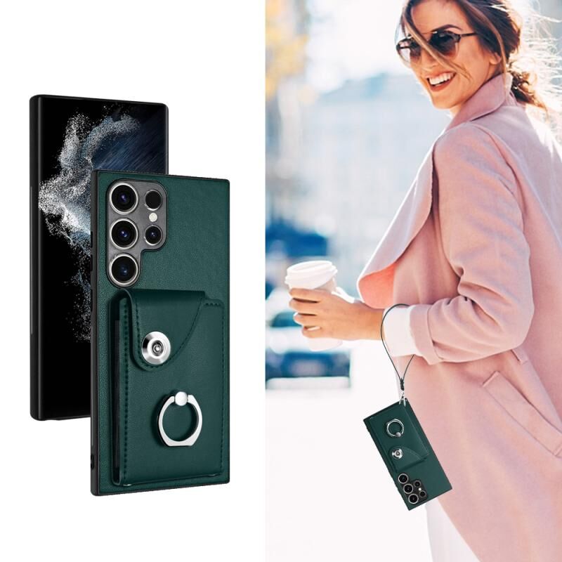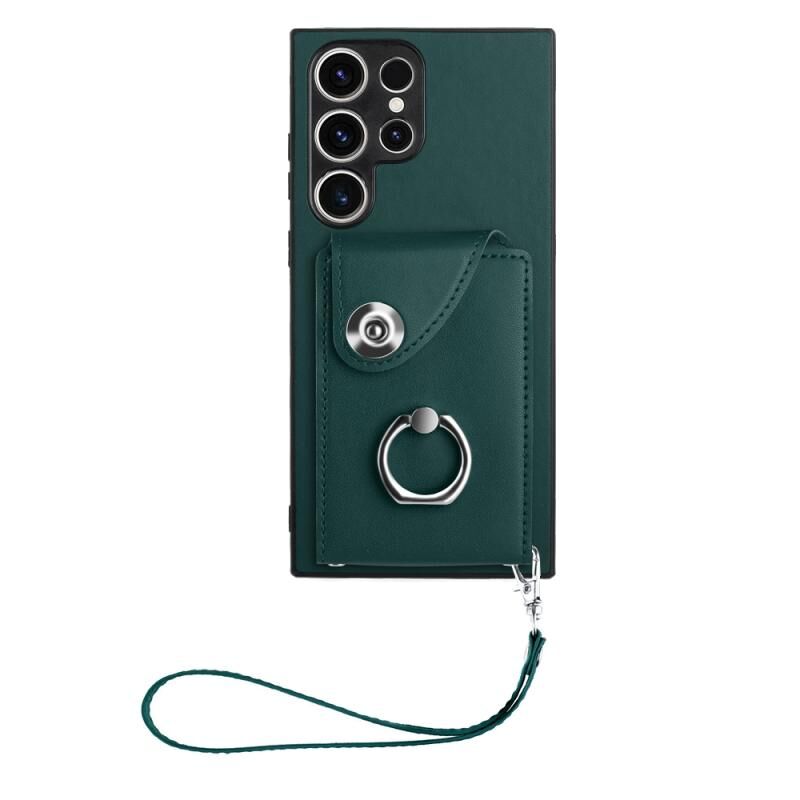 Για Samsung Galaxy S23 Ultra 5G Οργάνου κάρτα τσάντα δαχτυλίδι κάτοχος PU υπόθεση τηλεφώνου με κορδόνι (μωβ)