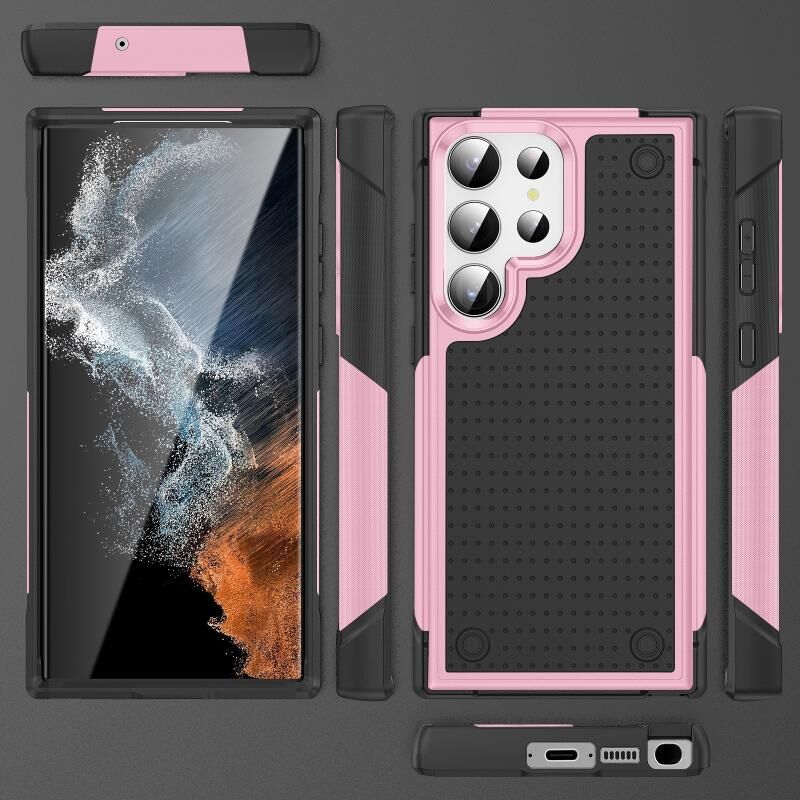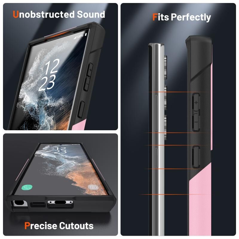 Για Samsung Galaxy S23 Ultra 5G PC + TPU Shockproof προστατευτική θήκη τηλεφώνου (ροζ + μαύρο)
