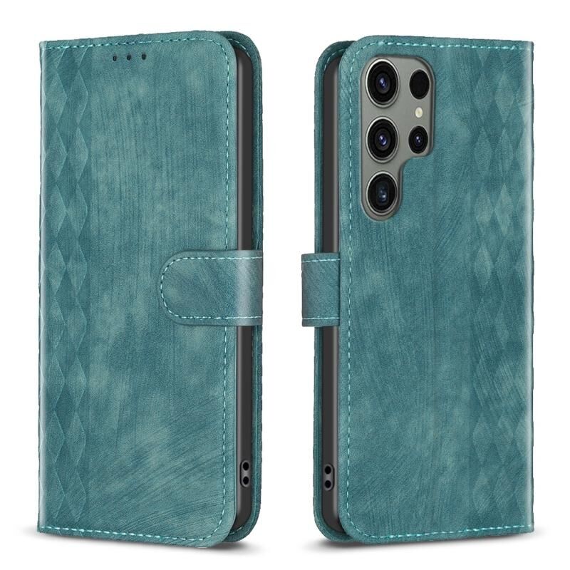 Για Samsung Galaxy S23 Ultra 5G καρό ανάγλυφη δερμάτινη θήκη τηλεφώνου (πράσινο)
