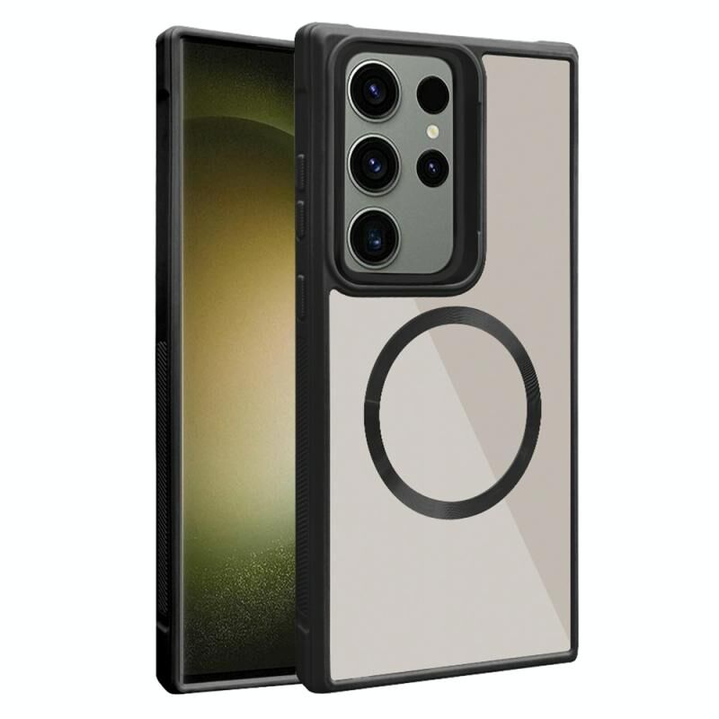 Θήκη κινητού τηλεφώνου Samsung Galaxy S23 Ultra 5G, υβριδική από ακρυλικό TPU με υφή CD και MagSafe, επιμεταλλωμένη (Μαύρο)