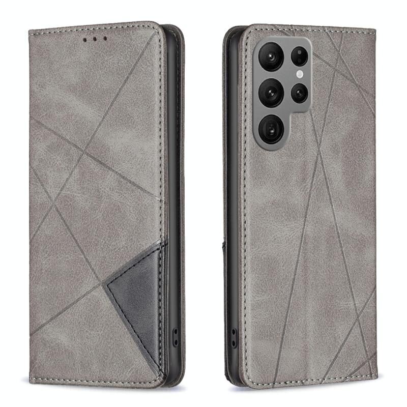 Για Samsung Galaxy S23 Ultra 5G Prismatic Αόρατη μαγνητική δερμάτινη θήκη τηλεφώνου (γκρι)