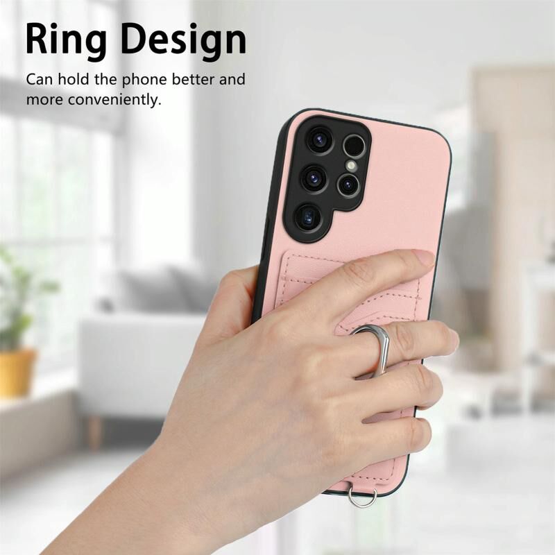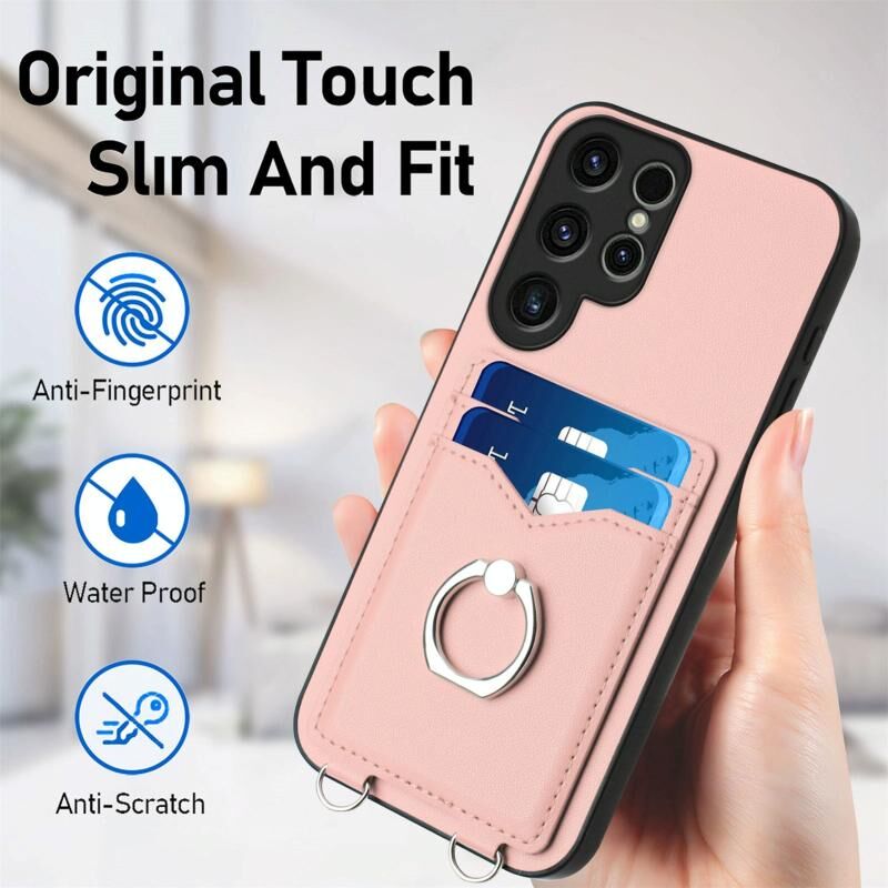 Για Samsung Galaxy S23 Ultra 5G R20 Crossbody σχοινί δαχτυλίδι κάτοχος κάρτας υπόθεση τηλεφώνου (ροζ)