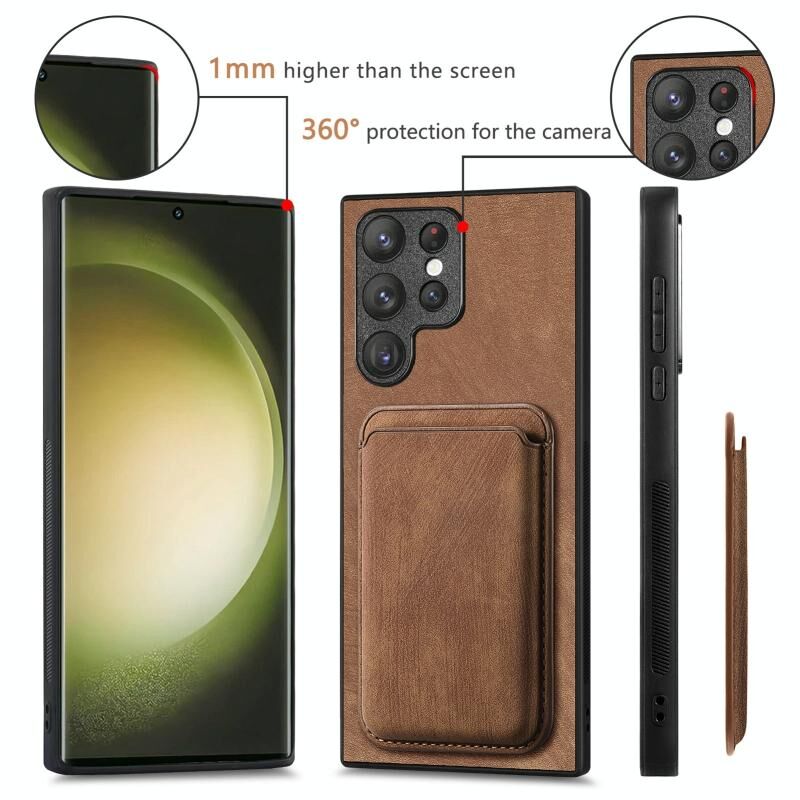 Για Samsung Galaxy S23 Ultra 5G ρετρό δερμάτινη κάρτα τσάντα τσάντα μαγνητική θήκη τηλεφώνου (καφέ)