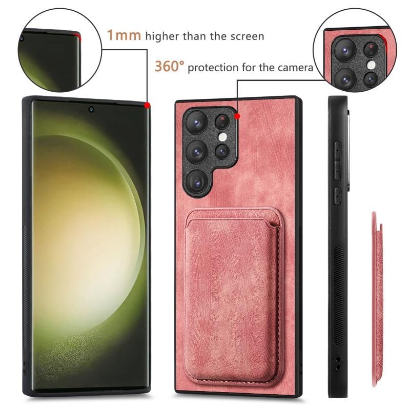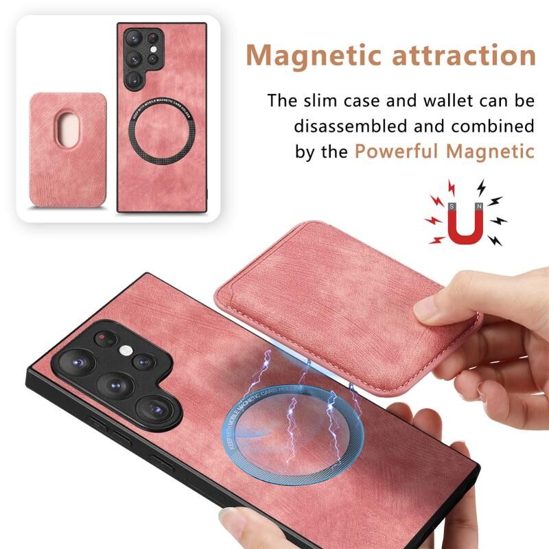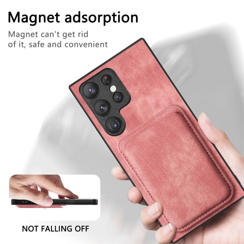 Για Samsung Galaxy S23 Ultra 5G ρετρό δερμάτινη κάρτα τσάντα τσάντα μαγνητική θήκη τηλεφώνου (ροζ)