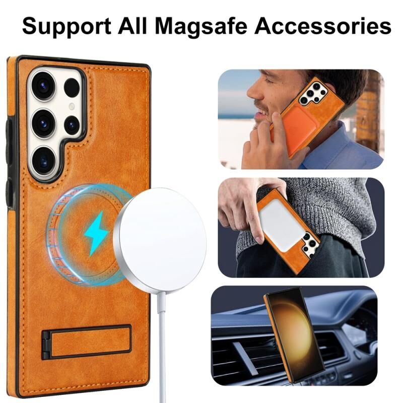 Θήκη τηλεφώνου Samsung Galaxy S23 Ultra 5G από δέρμα retro με αόρατο στήριγμα και MagSafe (Λευκό)