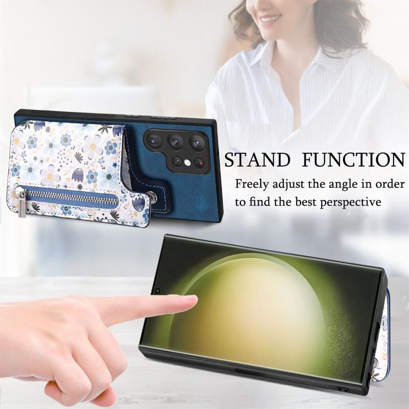 Για Samsung Galaxy S23 Ultra 5G Retro ζωγραφισμένο φερμουάρ πορτοφόλι πίσω υπόθεση τηλεφώνου (μπλε)