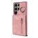 Για Samsung Galaxy S23 Ultra 5G ρετρό δαχτυλίδι και φερμουάρ RFID υποδοχή κάρτας τηλέφωνο υπόθεση (ροζ)