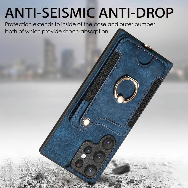 Για Samsung Galaxy S23 Ultra 5G Retro δέρμα-feel δαχτυλίδι δαχτυλίδι πολλαπλών καρτών πορτοφόλι υπόθεση τηλεφώνου (μπλε)