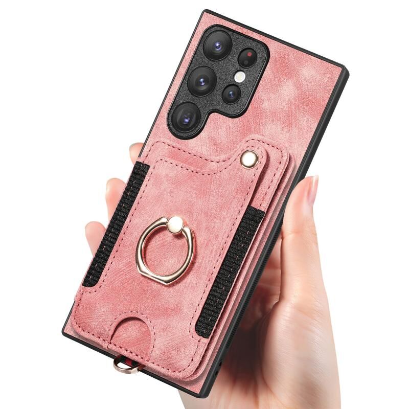 Για Samsung Galaxy S23 Ultra 5G Retro δέρμα-feel δαχτυλίδι δαχτυλίδι πολλαπλών καρτών πορτοφόλι υπόθεση τηλεφώνου (μωβ)