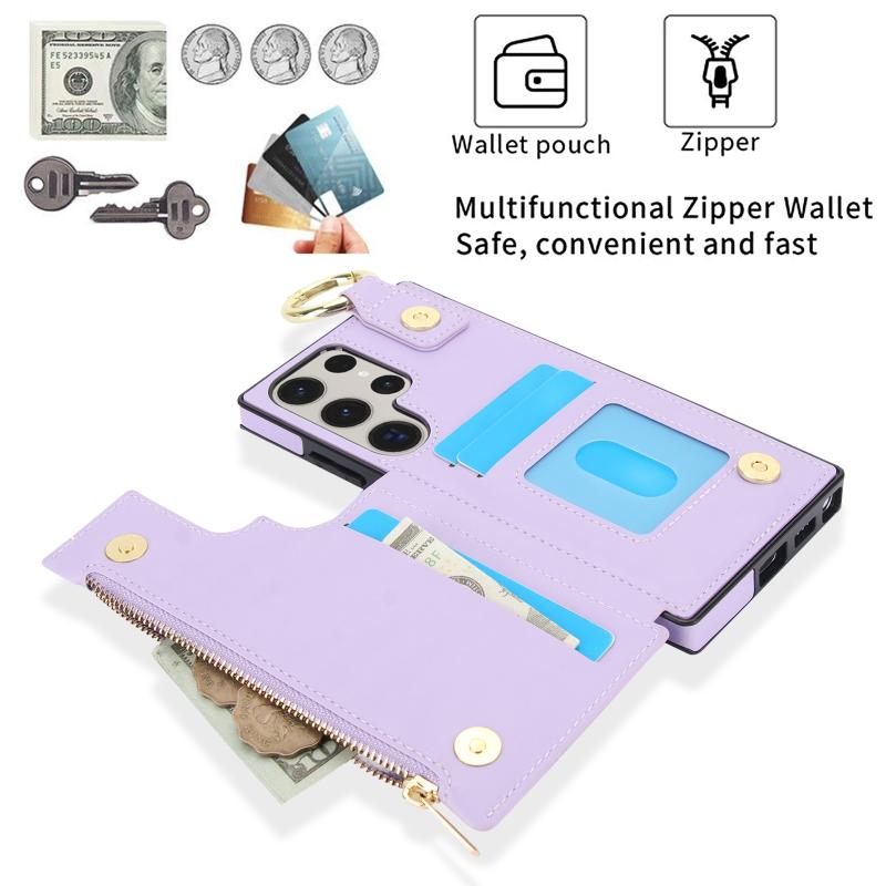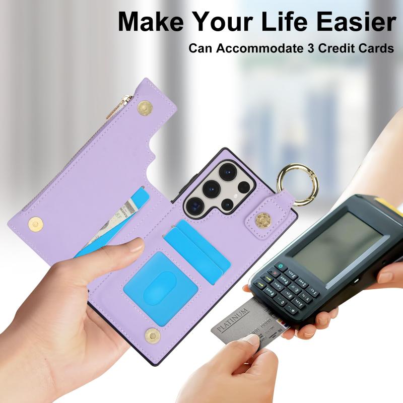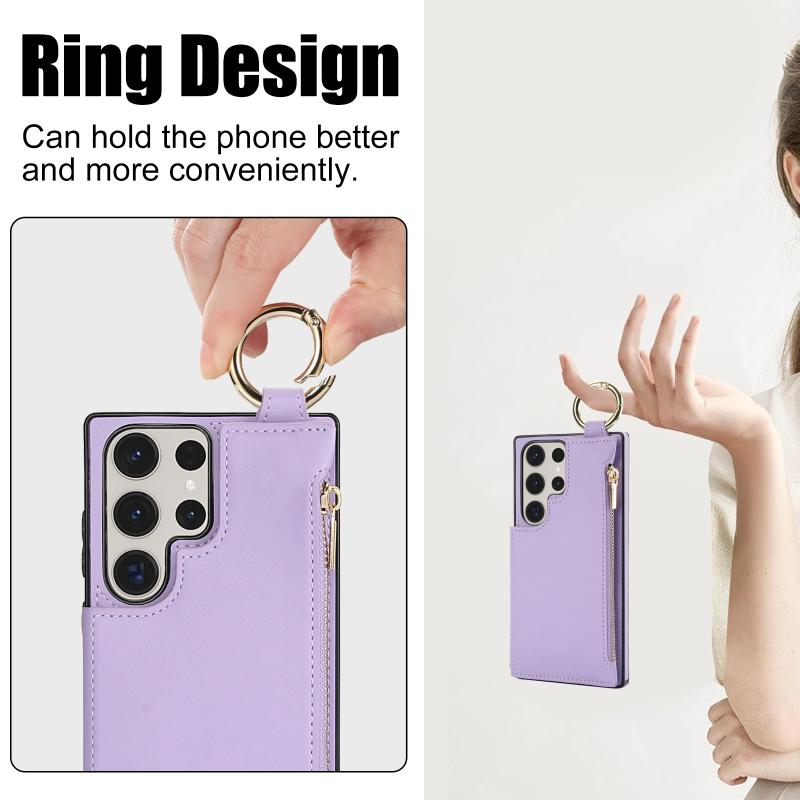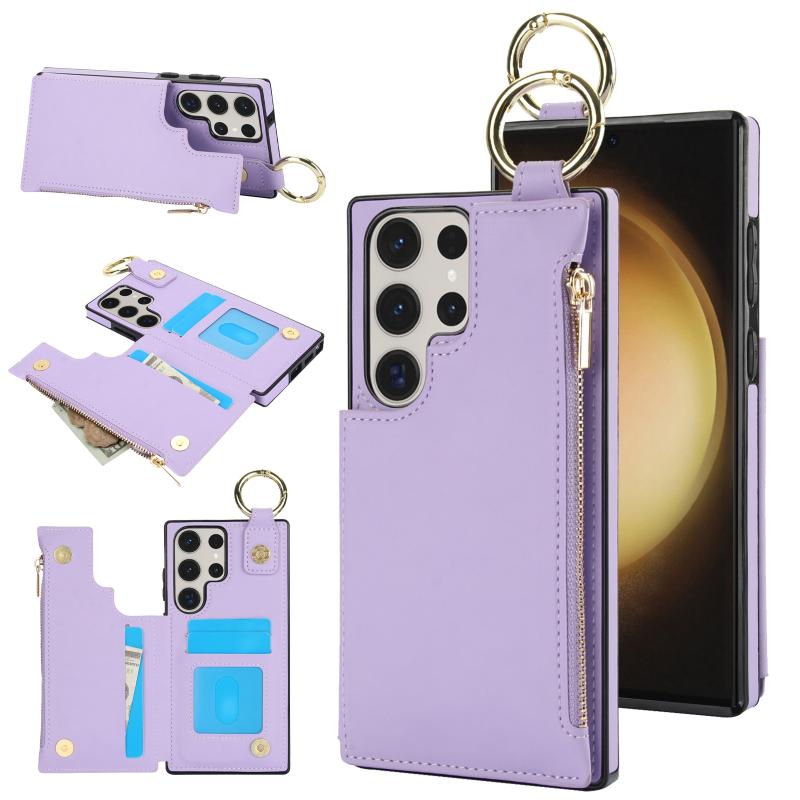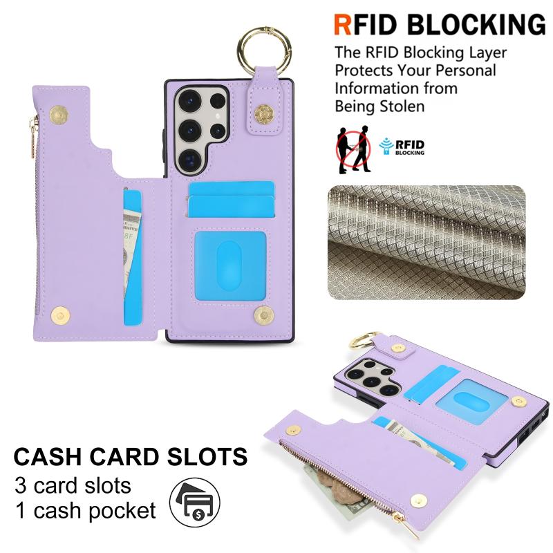 For Samsung Galaxy S23 Ultra 5G RFlD Anti-theft Double Buckle Ring Zipper Card Phone Case(Purple)