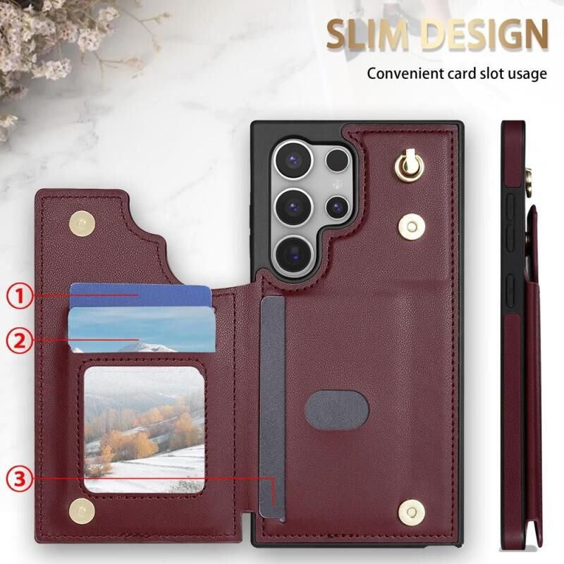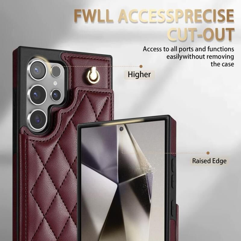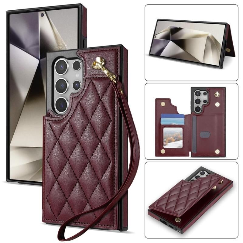 Για Samsung Galaxy S23 Ultra 5G Rhombic Dual Buckle υποδοχές κάρτας υπόθεση τηλεφώνου με κορδόνι (κόκκινο κρασί)