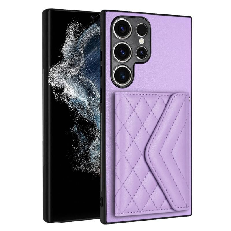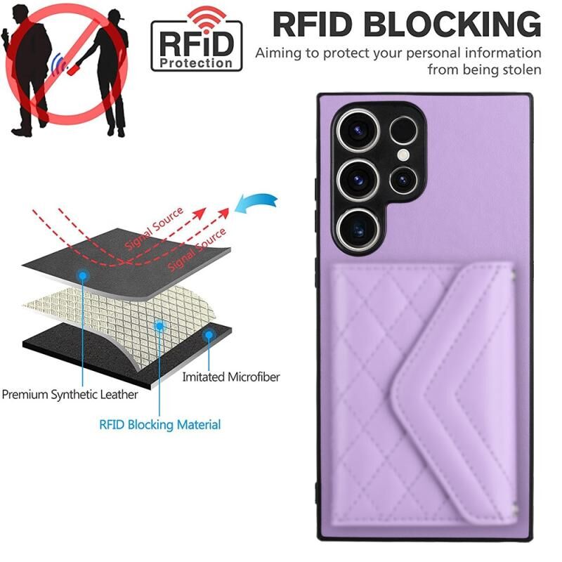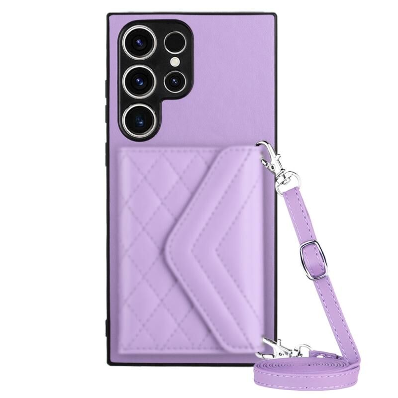 Για Samsung Galaxy S23 Ultra 5G Rhombic υφή κάρτα τσάντα RFID υπόθεση τηλεφώνου με μακρύ κορδόνι (Light Purple)