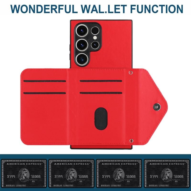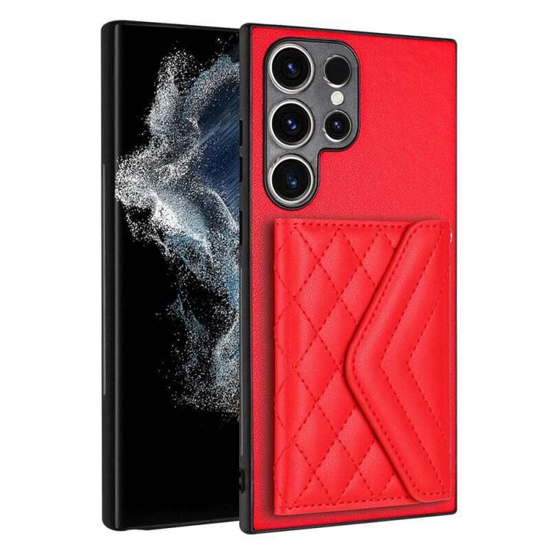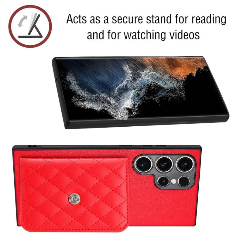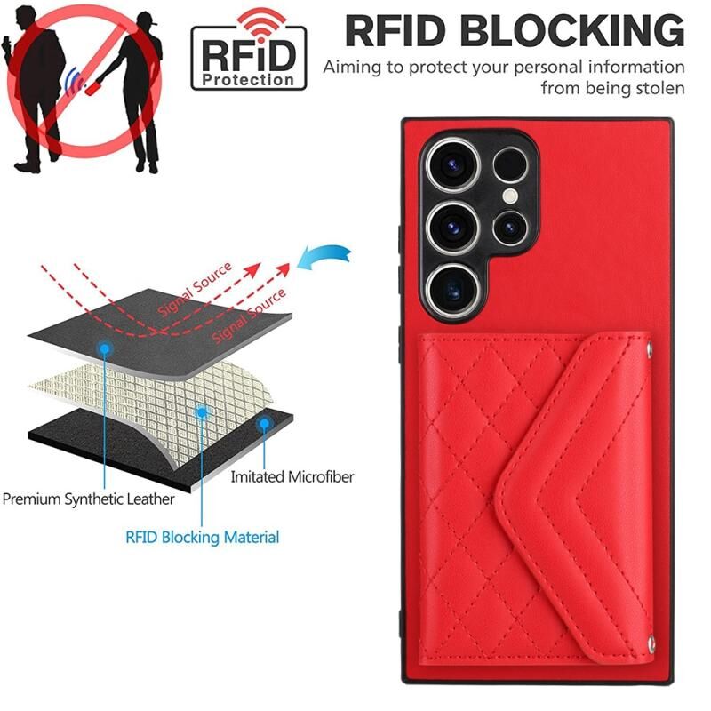 Για Samsung Galaxy S23 Ultra 5G Rhombic υφή κάρτα τσάντα RFID υπόθεση τηλεφώνου με μακρύ κορδόνι(Κόκκινο)