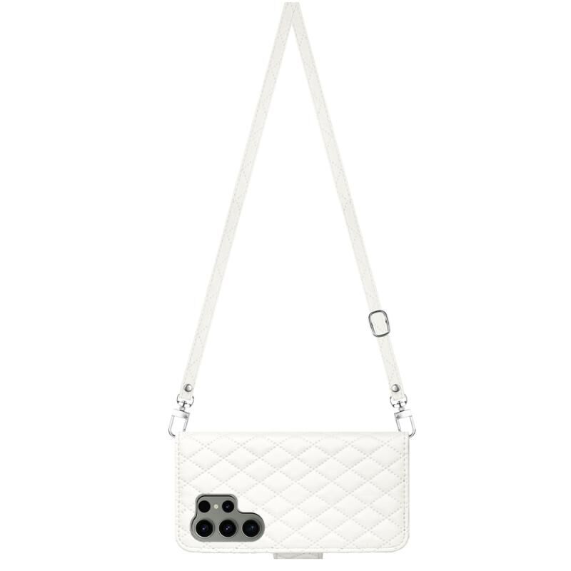 Για Samsung Galaxy S23 Ultra 5G Rhombic υφή Flip δερμάτινη θήκη τηλεφώνου με μακρύ κορδόνι (λευκό)