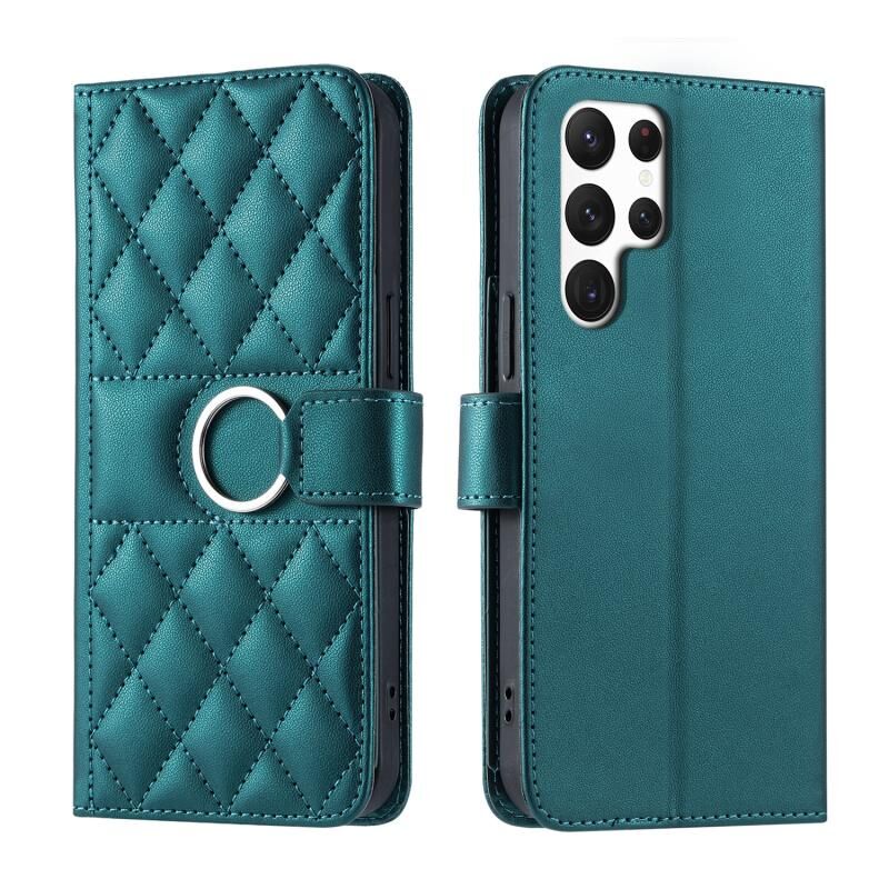 For Samsung Galaxy S23 Ultra 5G Ring Buckle Rhombic Leather Phone Case(Green)