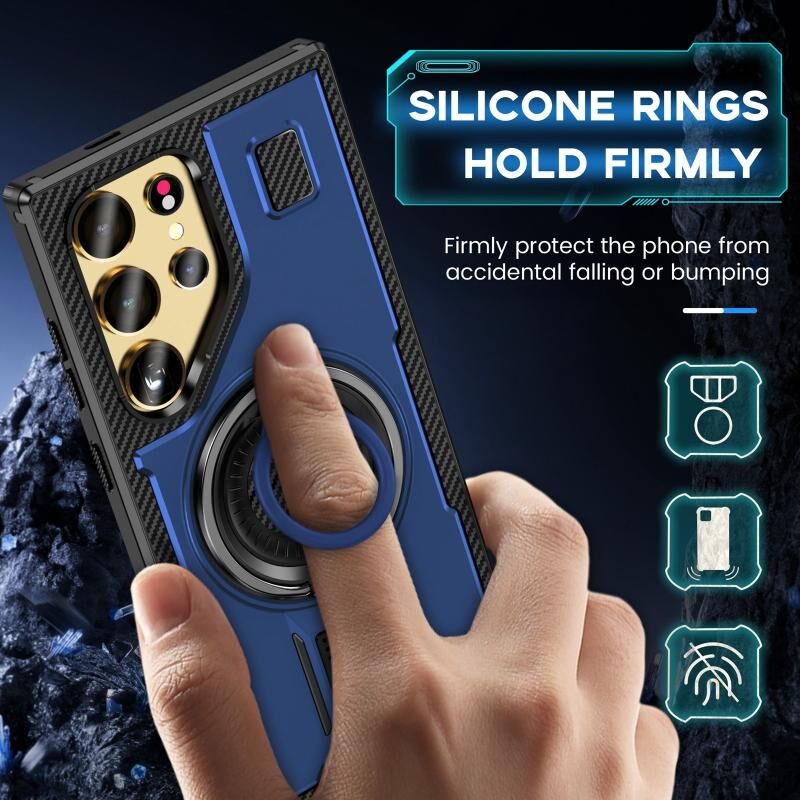 3. Δακτύλιος και βάση σιλικόνης: Όχι μόνο βασική προστασία, η θήκη θα λειτουργήσει ως λαβή τηλεφώνου για να κρατάτε σταθερά το τηλέφωνό σας. Και ως βάση τηλεφώνου που επιτρέπει τη λειτουργία πορτραίτου ή οριζοντίου σε πολλές γωνίες.