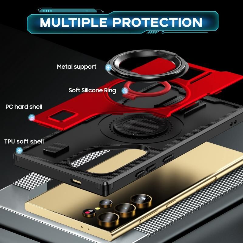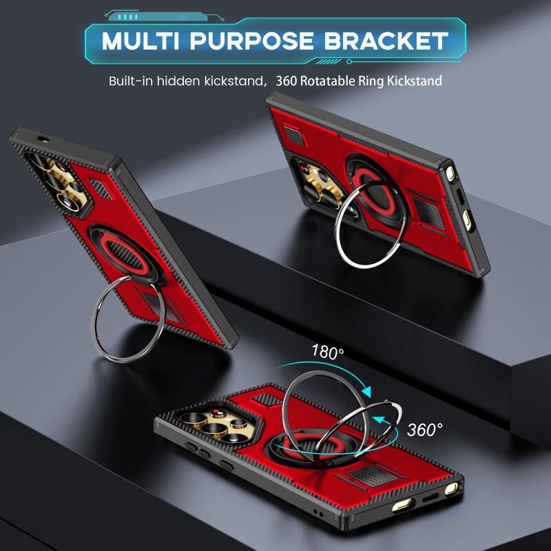 Για Samsung Galaxy S23 Ultra 5G Ring Holder Carbon Fiber PC υβριδικό TPU τηλέφωνο υπόθεση (κόκκινο)