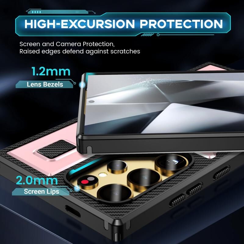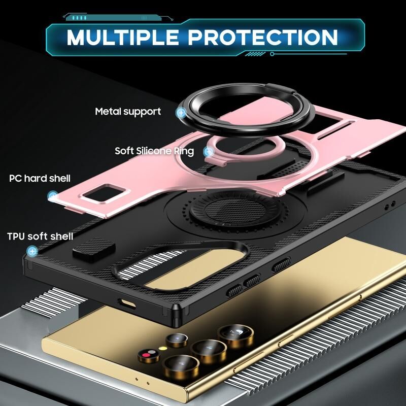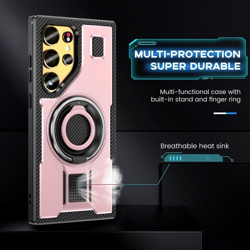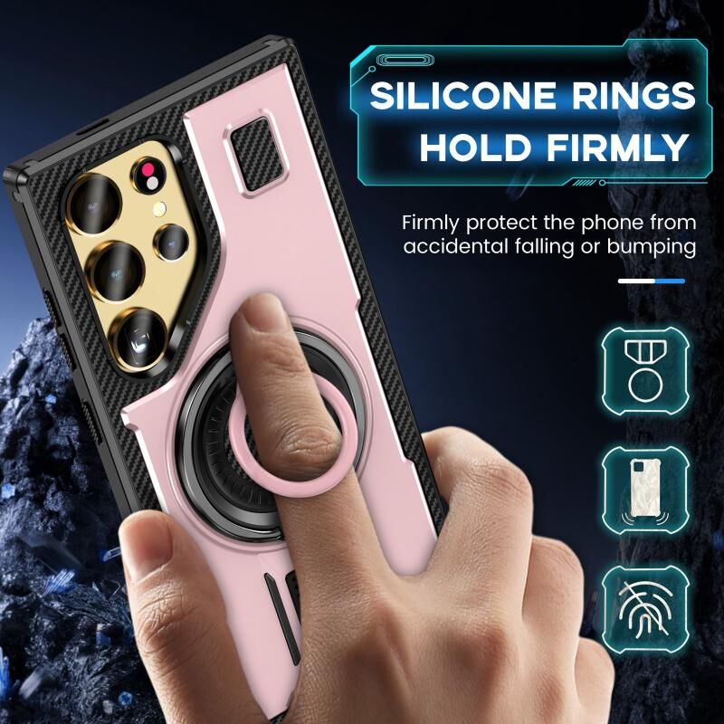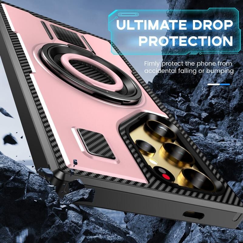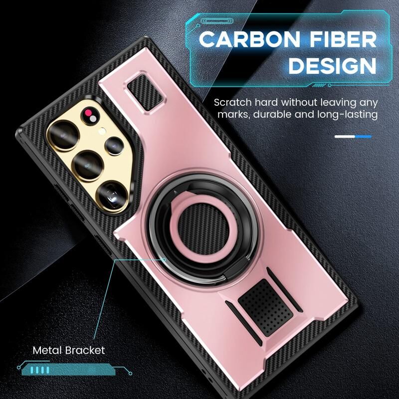 Για Samsung Galaxy S23 Ultra 5G Ring Holder Carbon Fiber PC Hybrid TPU τηλέφωνο υπόθεση (Rose Gold)