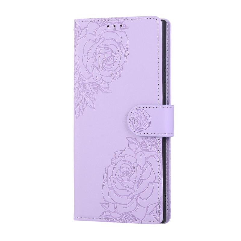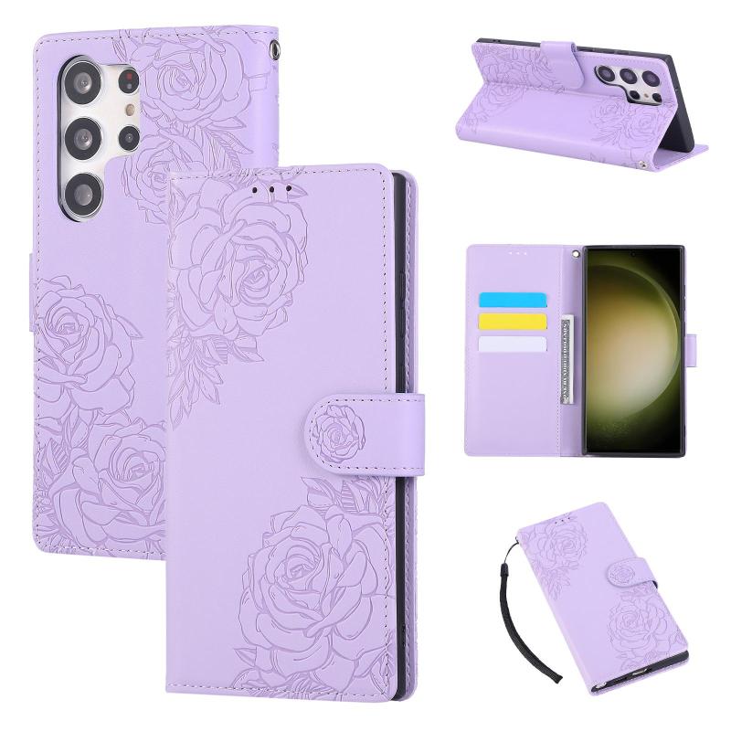 For Samsung Galaxy S23 Ultra 5G Rose Flower Embossed 3-Card Slots Leather Phone Case(Purple)