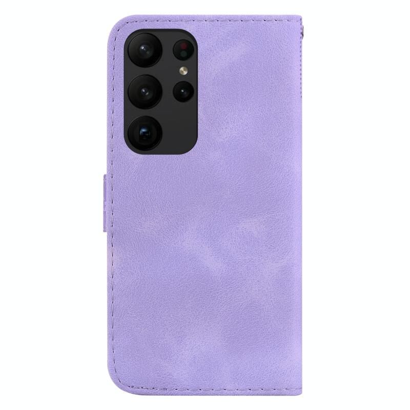 Θήκη τηλεφώνου Samsung Galaxy S23 Ultra 5G από δέρμα με ανάγλυφο σχέδιο σε σχήμα επτά (Μωβ)