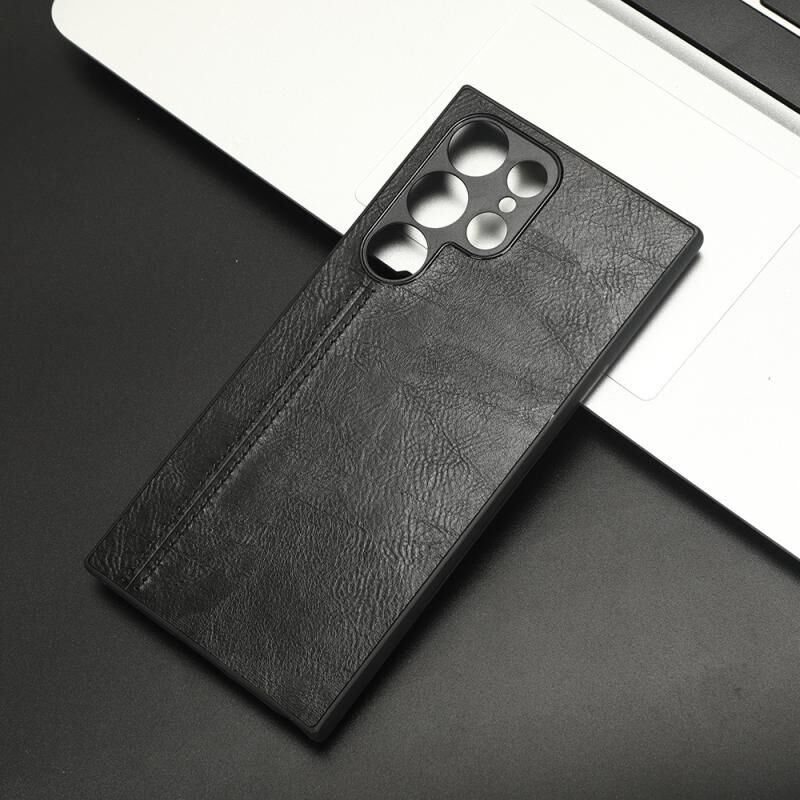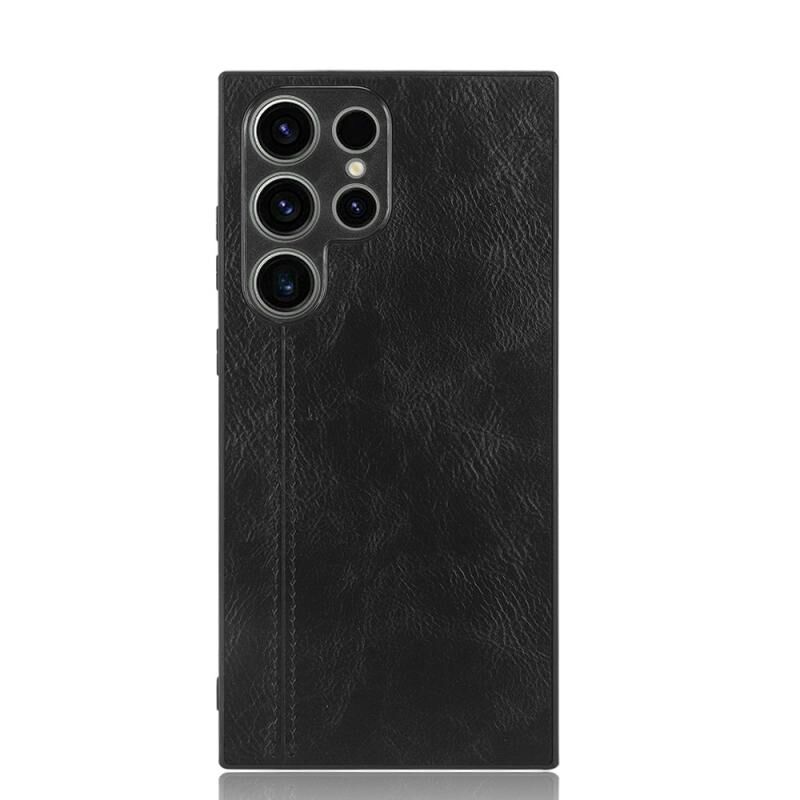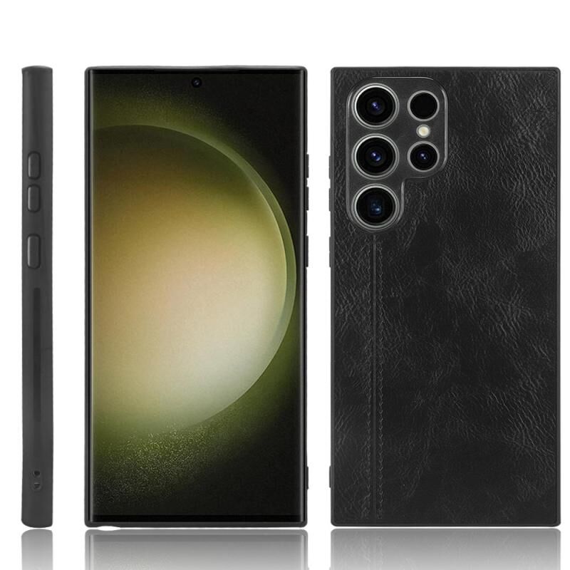 Για το Samsung Galaxy S23 Ultra 5G Ράψιμο αγελάδα μοτίβο δέρματος PC + PU + TPU τηλέφωνο υπόθεση (μαύρο)