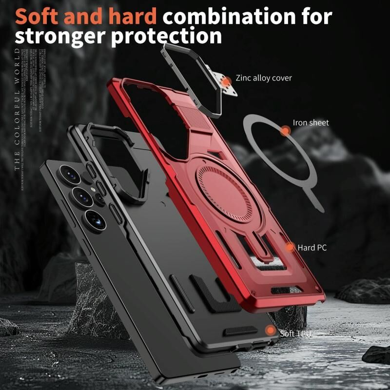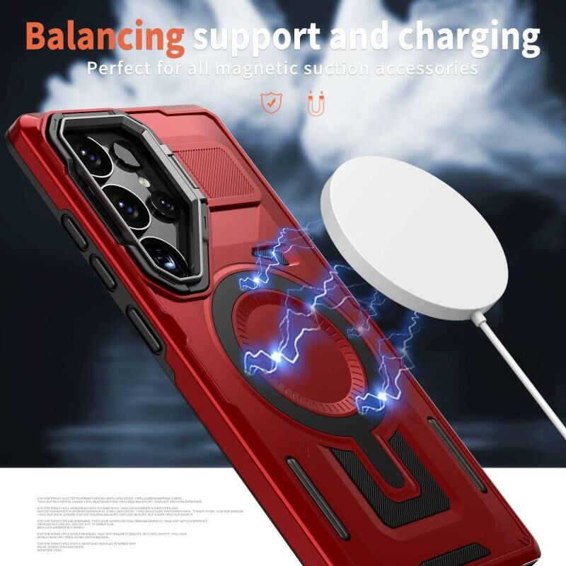 Θήκη κινητού τηλεφώνου Samsung Galaxy S23 Ultra 5G Shield Hollow Frame Holder MagSafe (Κόκκινο)