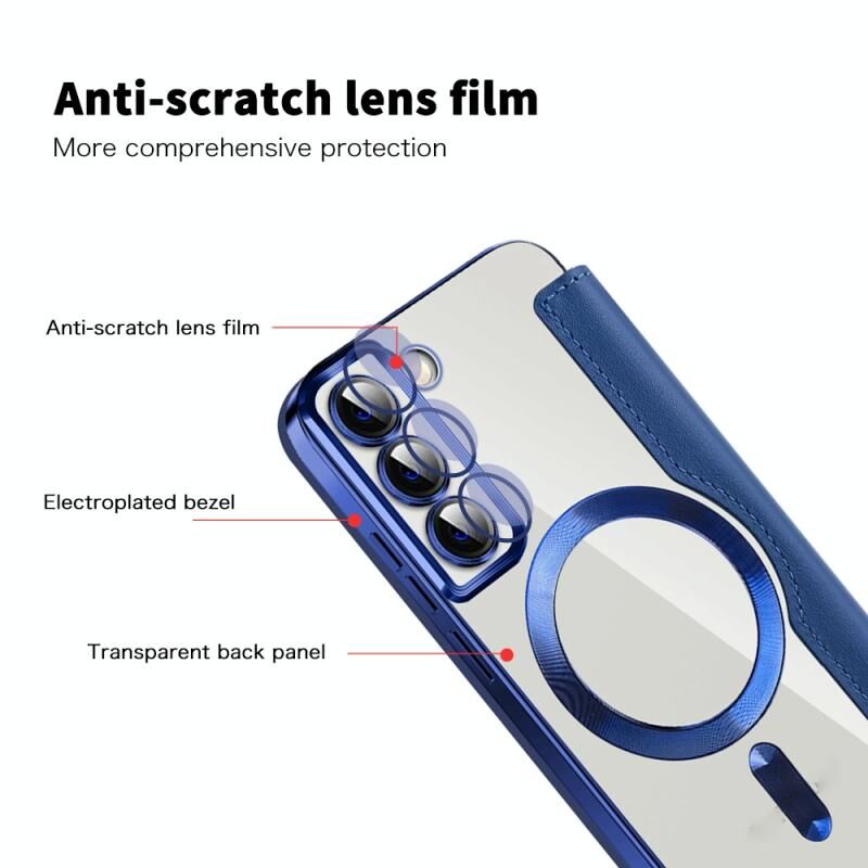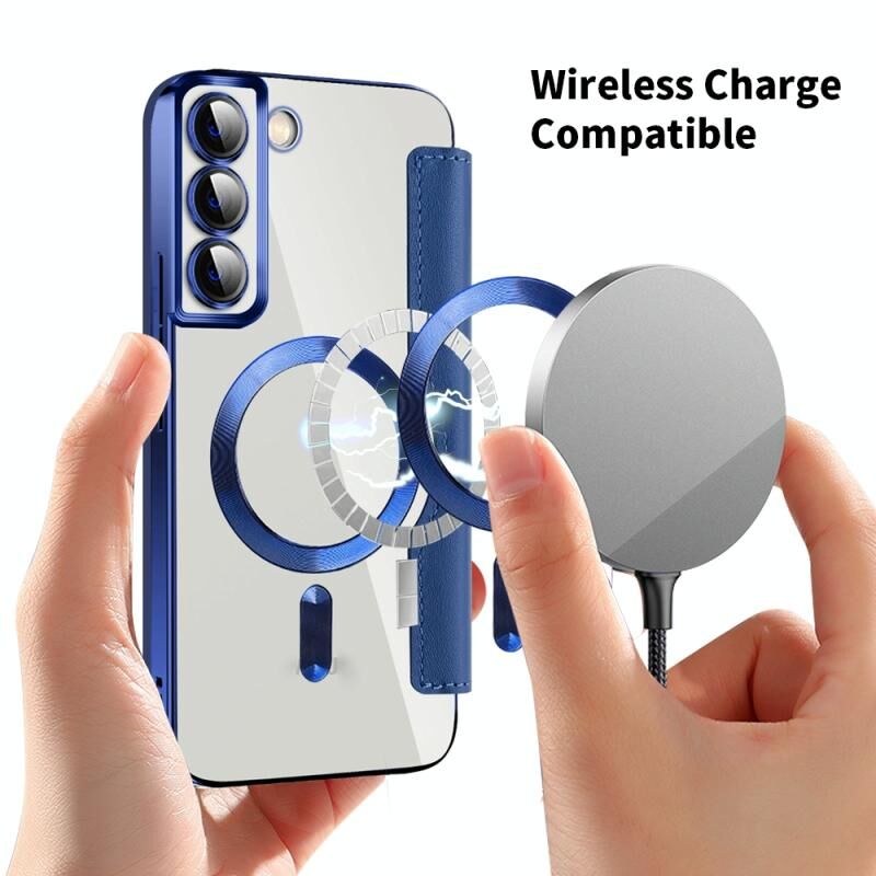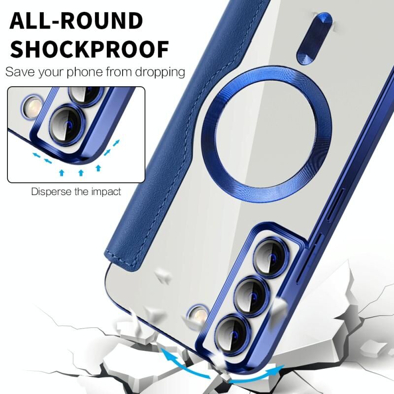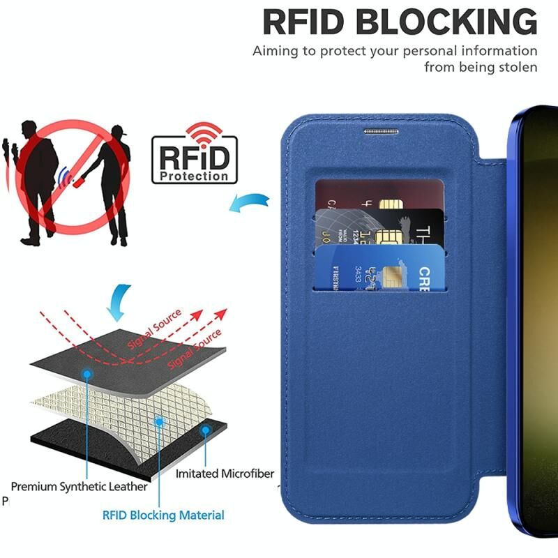Θήκη κινητού Samsung Galaxy S23 Ultra 5G Shield MagSafe RFID Anti-theft από δέρμα με ρόμβους (Σκούρο Μπλε)