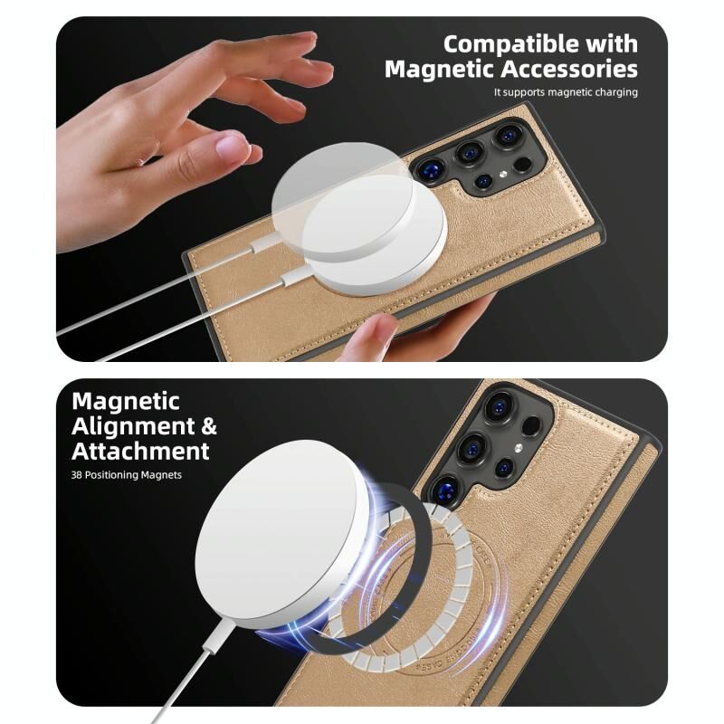 Θήκη κινητού τηλεφώνου Samsung Galaxy S23 Ultra 5G Shield, πολυλειτουργική τσάντα κάρτας MagSafe (Χρυσαφί της Ερήμου)