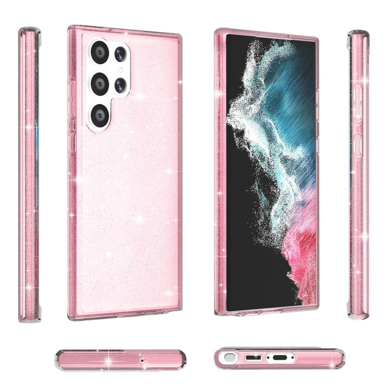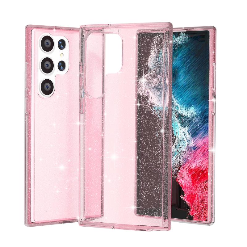 For Samsung Galaxy S23 Ultra 5G Shockproof Terminator Style Glitter Powder Phone Case(Shiny Pink)