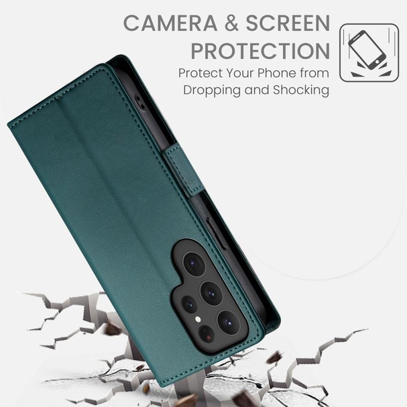 For Samsung Galaxy S23 Ultra 5G Side Buckle Magnetic Frosted Leather Phone Case(Dark Green)