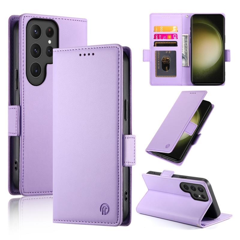For Samsung Galaxy S23 Ultra 5G Side Buckle Magnetic Frosted Leather Phone Case(Purple)
