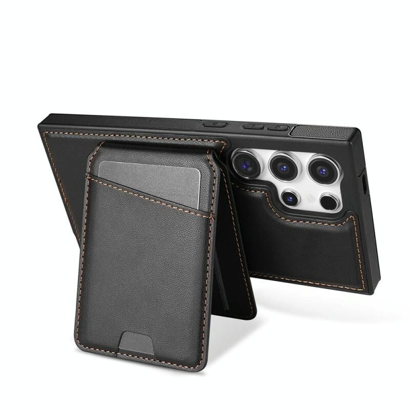 Θήκη κινητού τηλεφώνου Samsung Galaxy S23 Ultra 5G με αίσθηση δέρματος, αποσπώμενη τσέπη για κάρτες και MagSafe (Μαύρο)