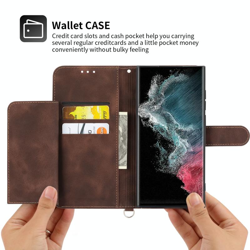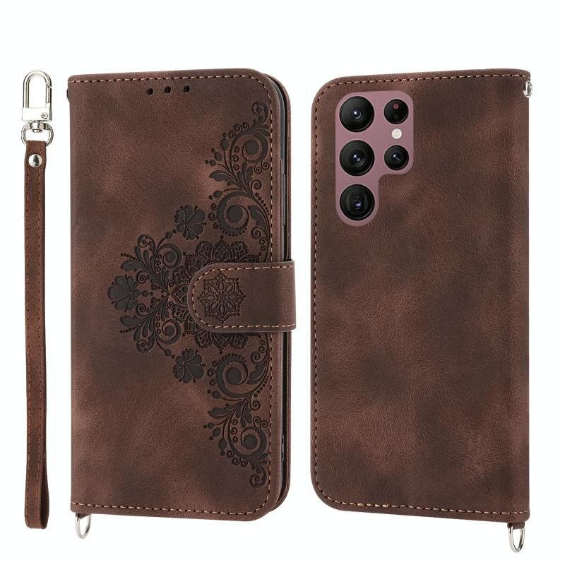 Θήκη τηλεφώνου Samsung Galaxy S23 Ultra 5G από δέρμα με ανάγλυφα λουλούδια και υφή δέρματος (Καφέ)