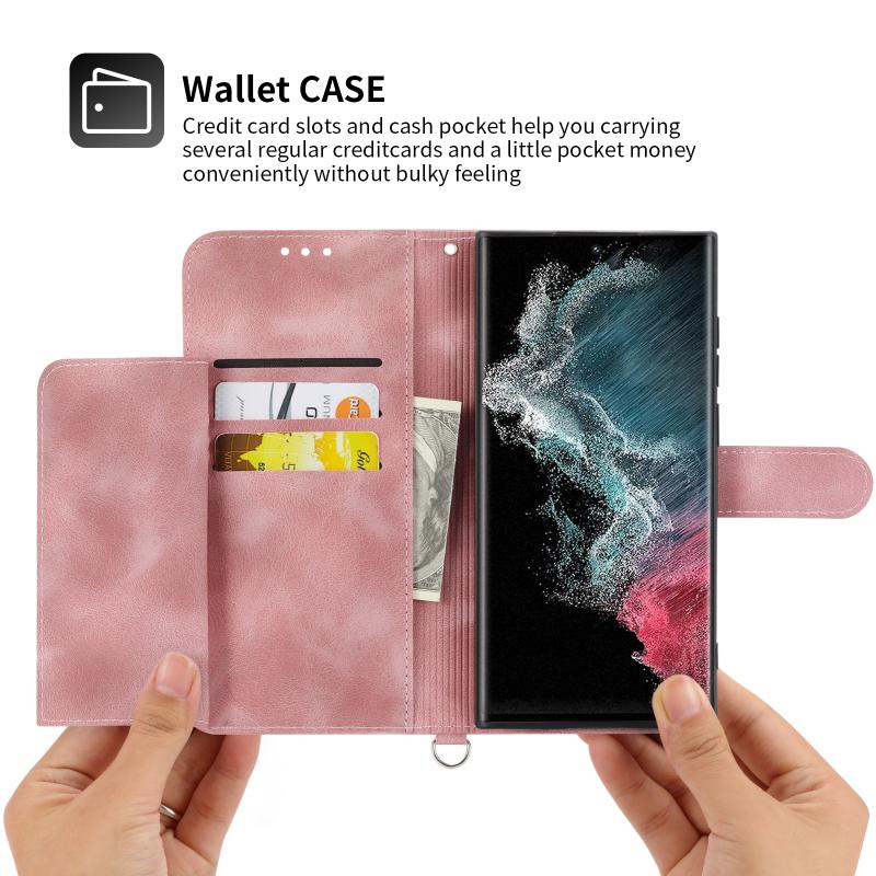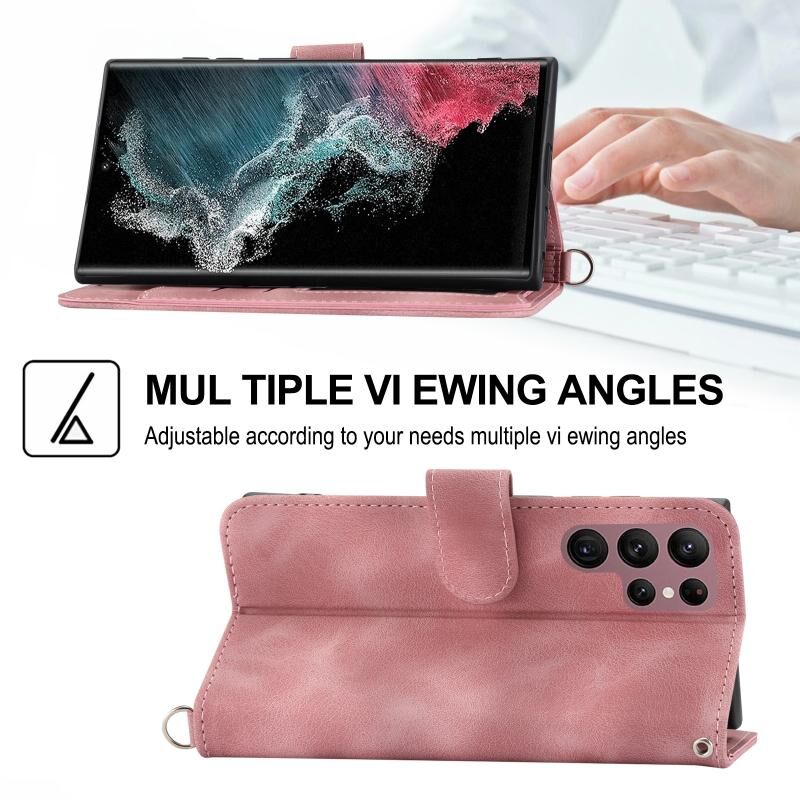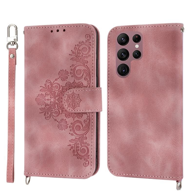 Θήκη τηλεφώνου Samsung Galaxy S23 Ultra 5G από δέρμα με ανάγλυφα λουλούδια και υφή δέρματος (ρόζ)