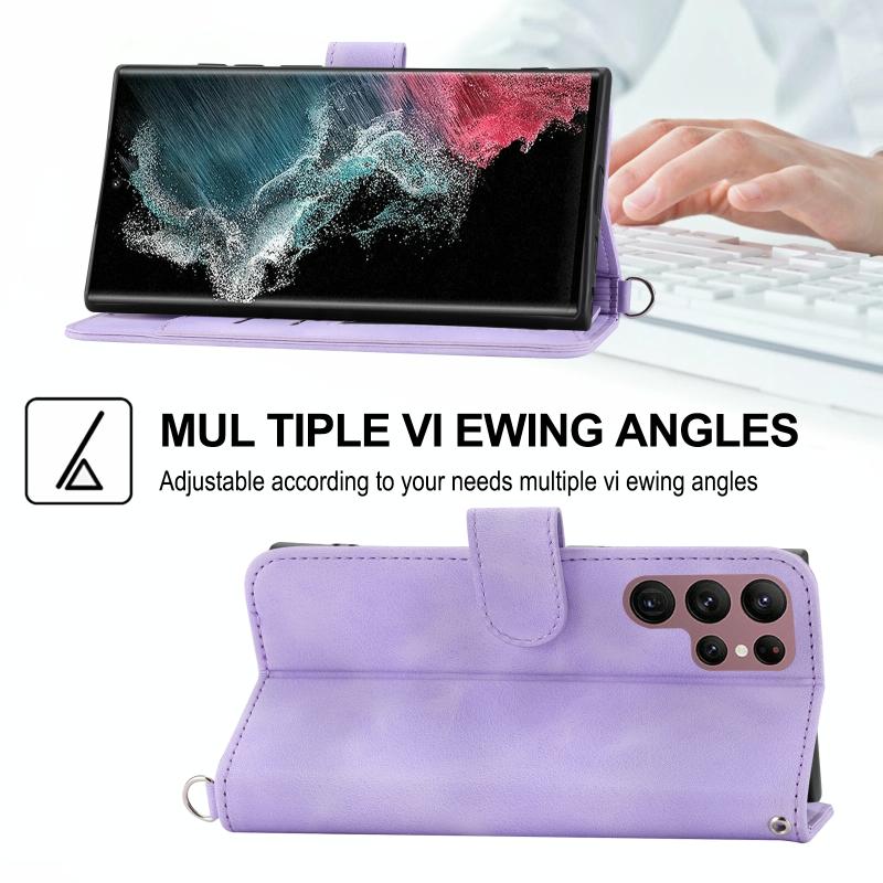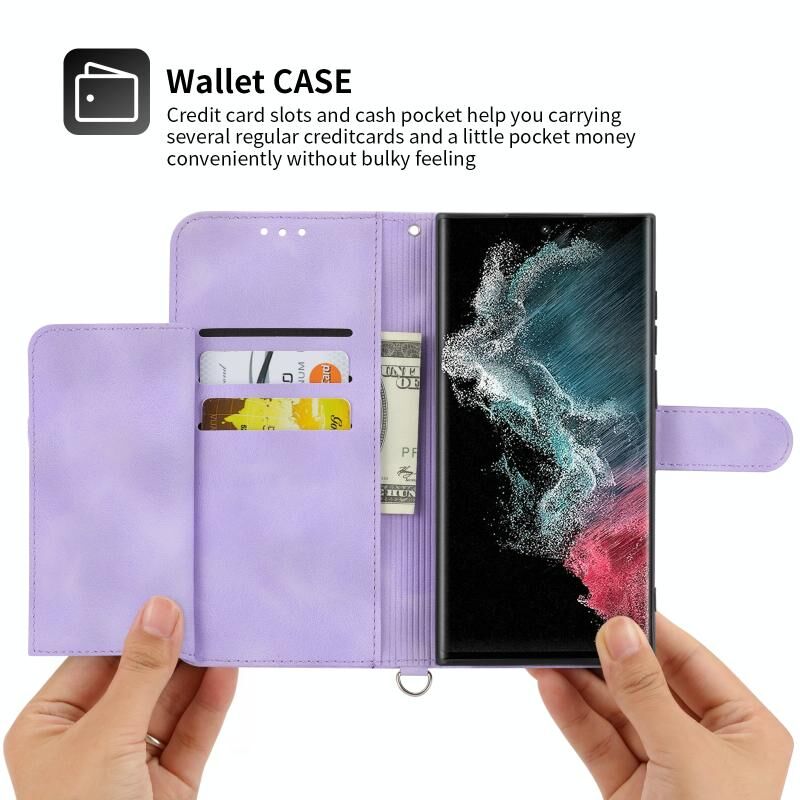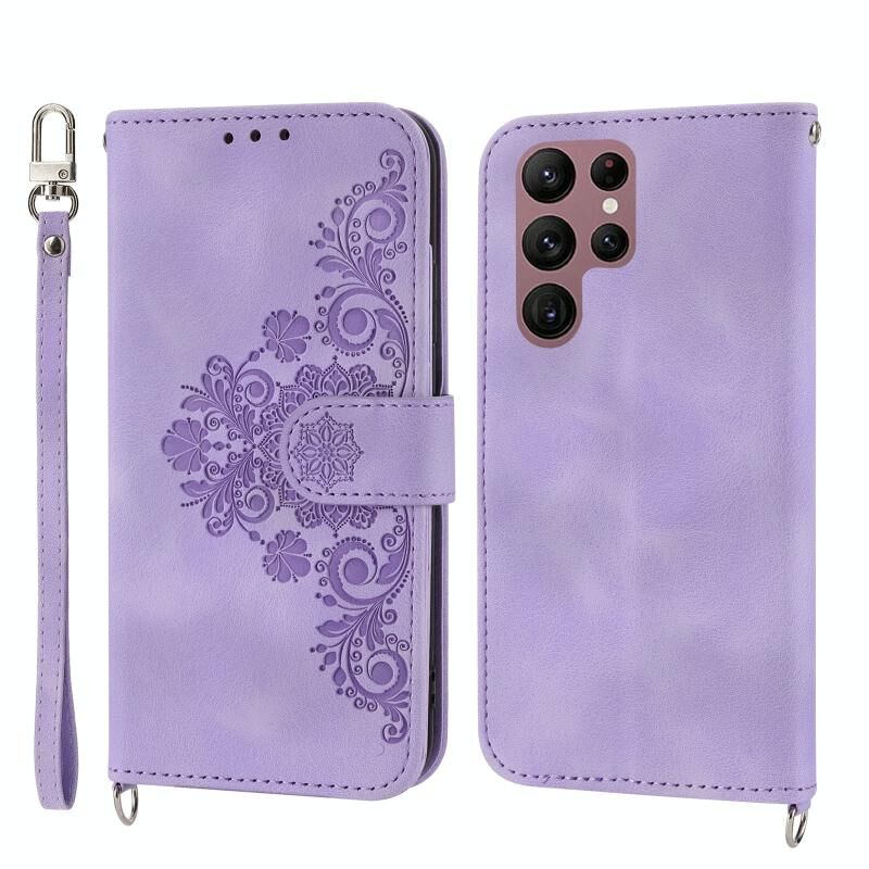 Θήκη τηλεφώνου Samsung Galaxy S23 Ultra 5G από δέρμα με ανάγλυφα λουλούδια και υφή δέρματος (Μωβ)