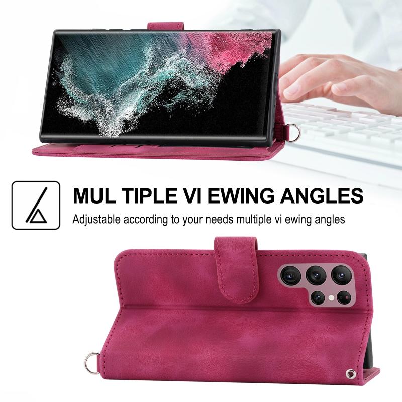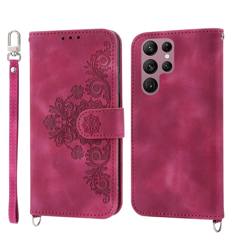Θήκη τηλεφώνου Samsung Galaxy S23 Ultra 5G από δέρμα με ανάγλυφα λουλούδια και υφή δέρματος (Κρασοκόκκινο)
