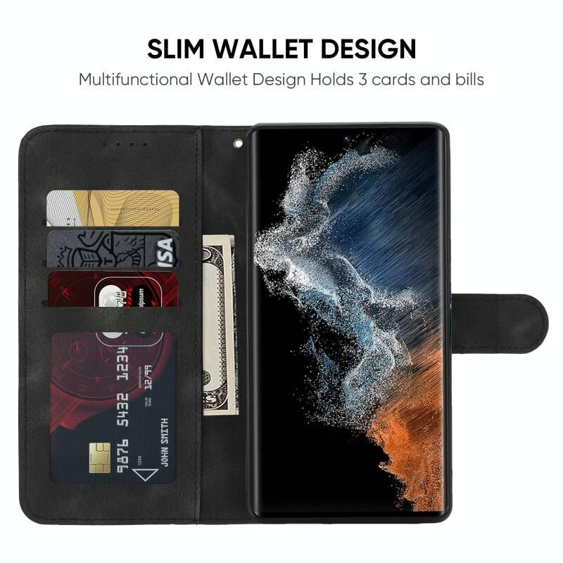 Θήκη τηλεφώνου Samsung Galaxy S23 Ultra 5G από δέρμα με γεωμετρικά σχέδια και αίσθηση δέρματος (Μαύρο)
