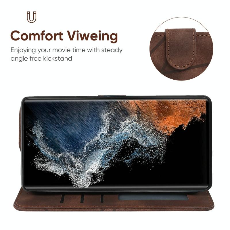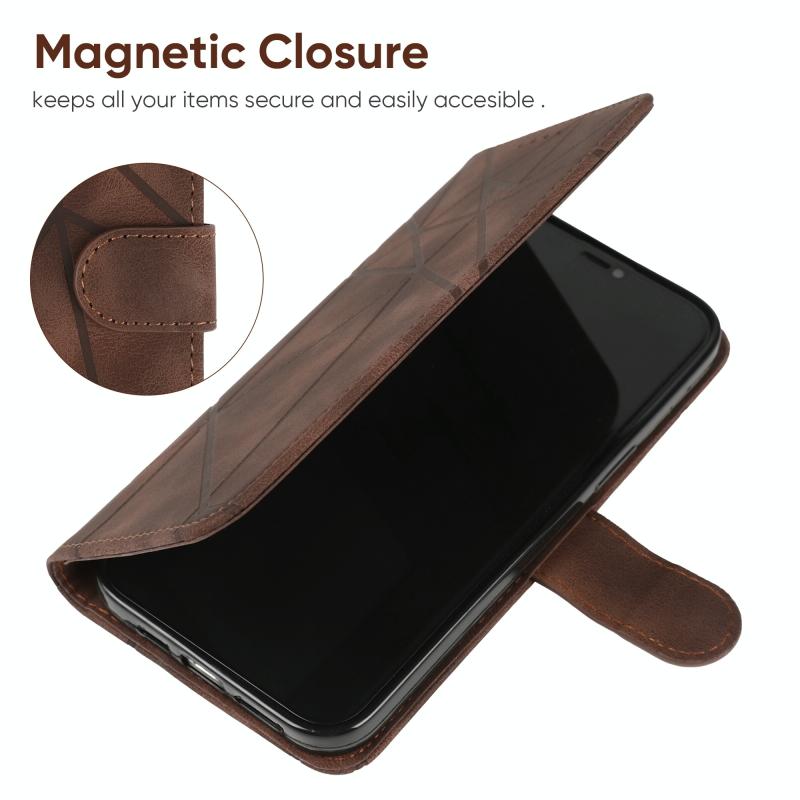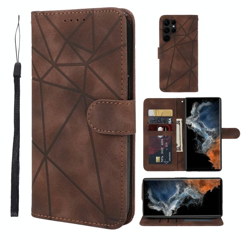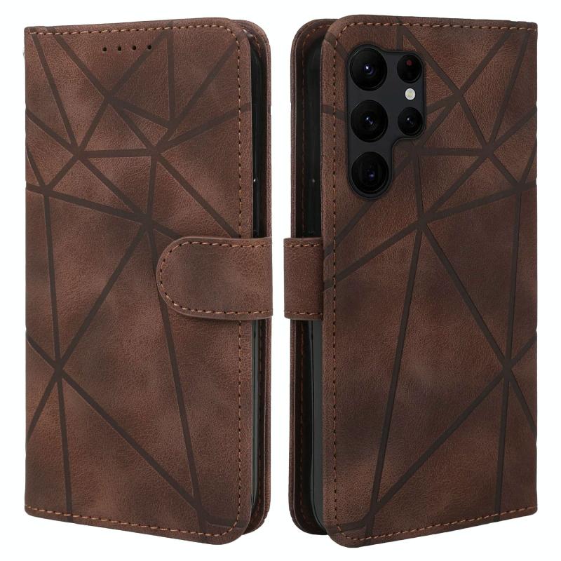 Θήκη Δερμάτινη Samsung Galaxy S23 Ultra 5G με Υφή και Γεωμετρικά Σχέδια (Καφέ)