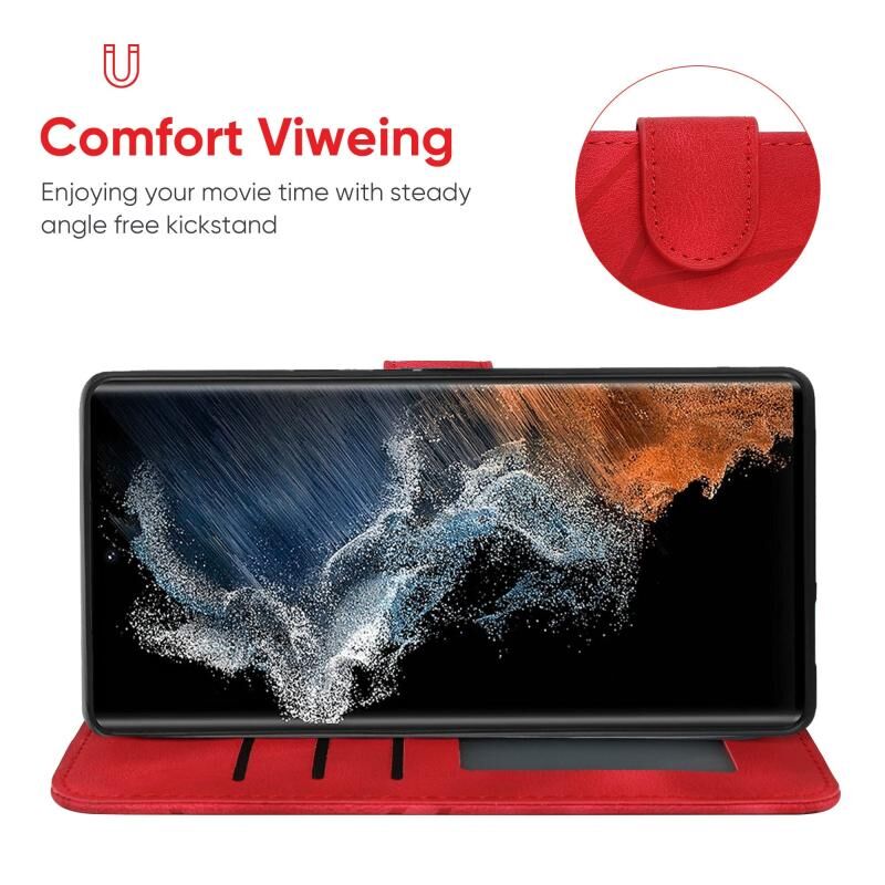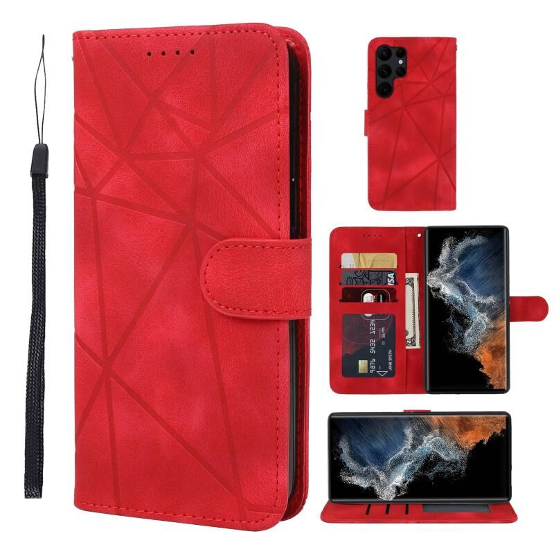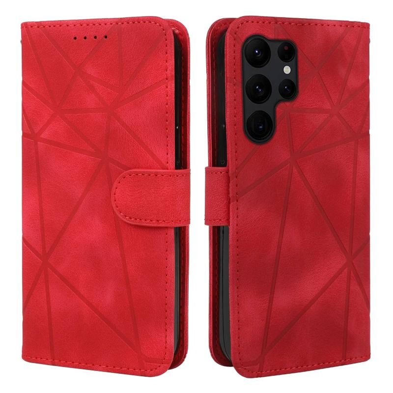 Θήκη τηλεφώνου Samsung Galaxy S23 Ultra 5G από δέρμα με γεωμετρικά σχέδια και αίσθηση δέρματος (Μαύρο)