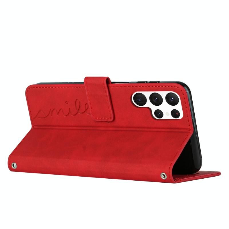 Θήκη τηλεφώνου Samsung Galaxy S23 Ultra 5G από δέρμα με μοτίβο καρδιάς και αίσθηση δέρματος (Κόκκινο)