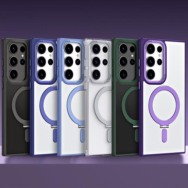 For Samsung Galaxy S23 Ultra 5G Skin Feel MagSafe Shockproof Phone Case with Holder(Purple)
