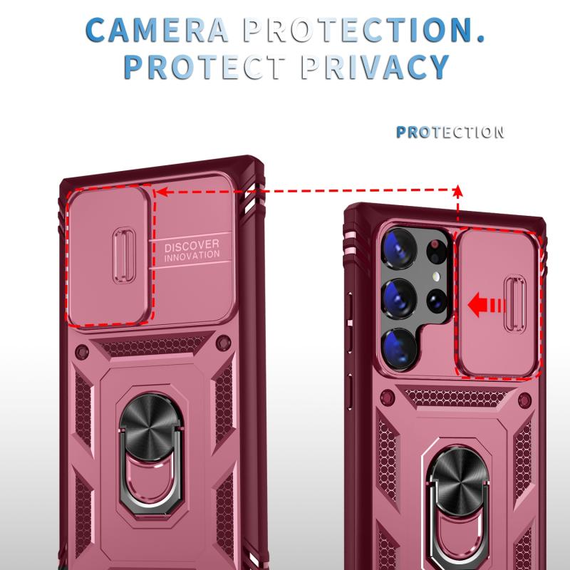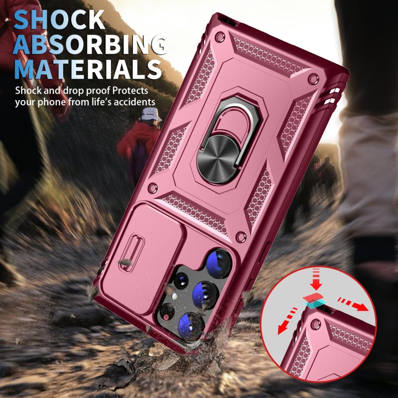 For Samsung Galaxy S23 Ultra 5G Sliding Camera Cover TPU + PC Phone Case(Pink+Red)