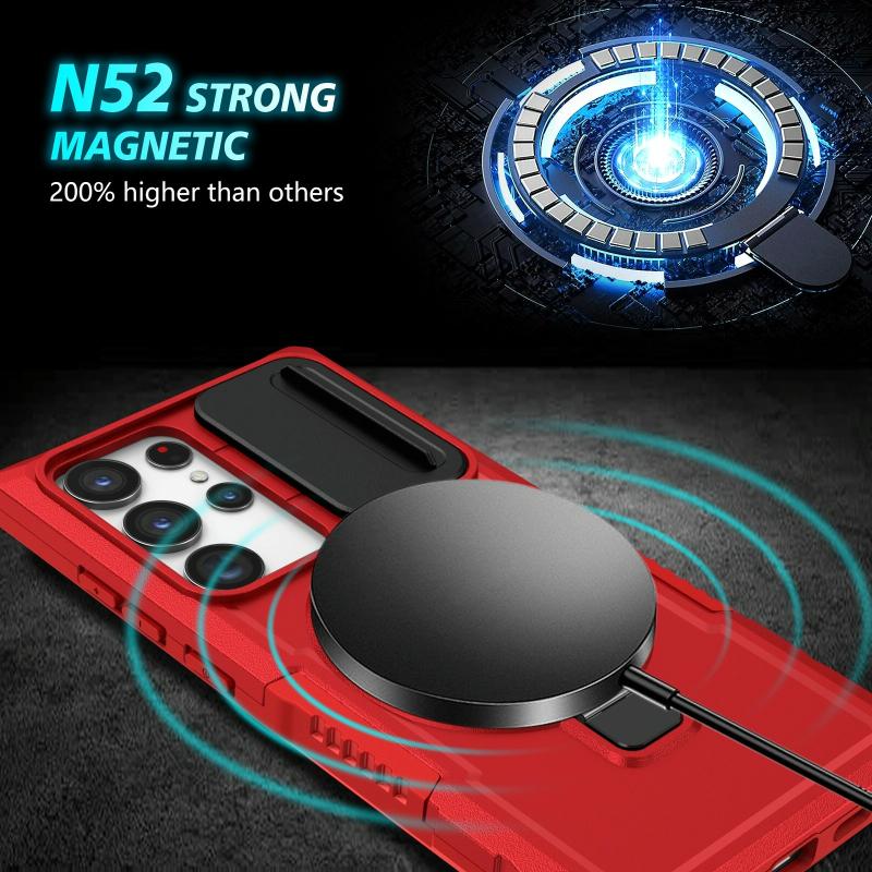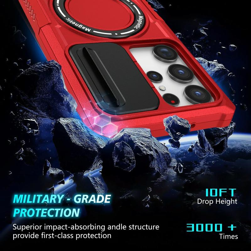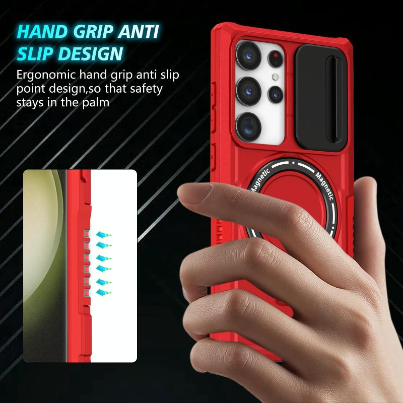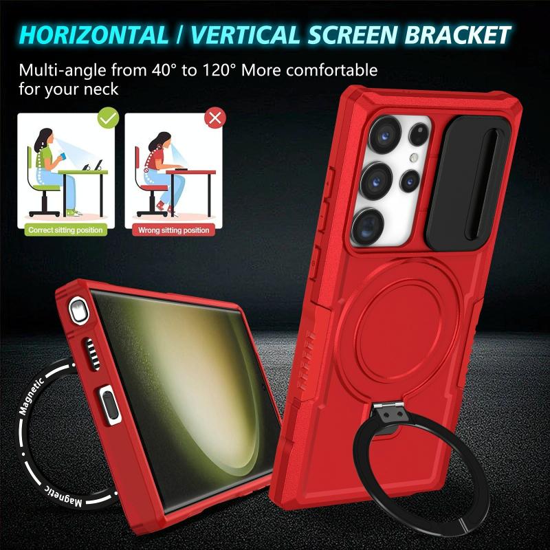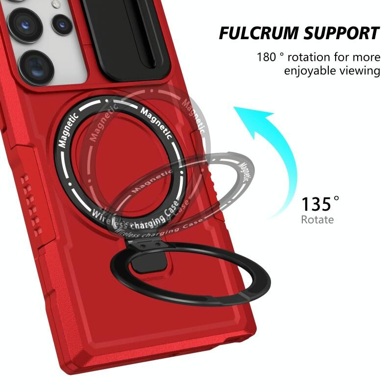 For Samsung Galaxy S23 Ultra 5G Sliding Camshield Magsafe Holder TPU Hybrid PC Phone Case(Red)
