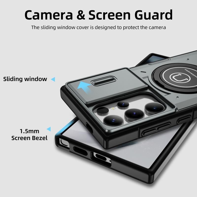 Για Samsung Galaxy S23 Ultra 5G συρόμενη Camshield TPU υβριδικό PC μαγνητική θήκη τηλέφωνο κάτοχος (γκρι)