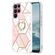 For Samsung Galaxy S23 Ultra 5G Splicing Marble Flower IMD TPU Phone Case Ring Holder(Pink White)