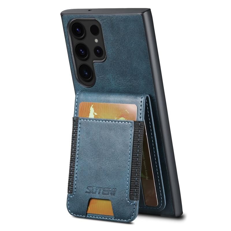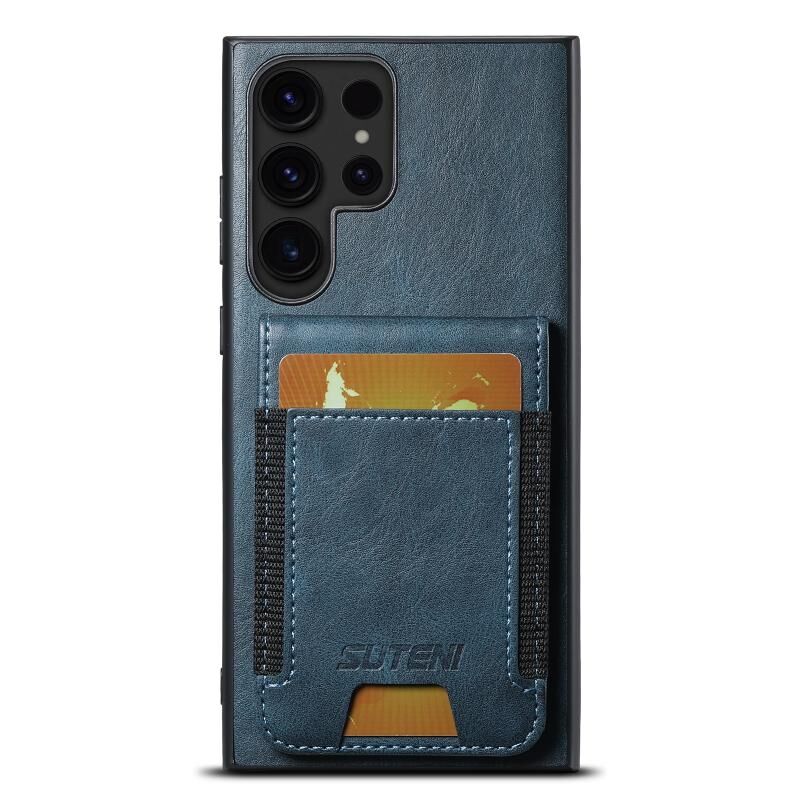 Θήκη κινητού τηλεφώνου Samsung Galaxy S23 Ultra 5G Suteni H03 από δέρμα με κερί λαδιού, με βάση στήριξης και πορτοφόλι (Μπλε) (Suteni)