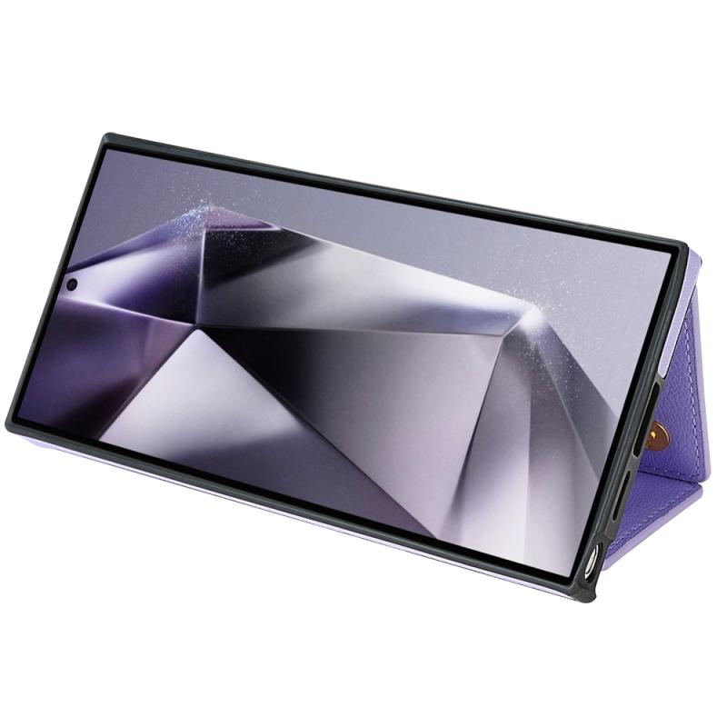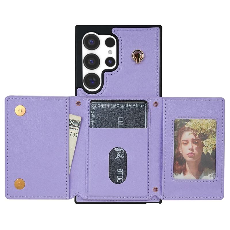 For Samsung Galaxy S23 Ultra 5G Three Fold Card Bag Phone Case with Long Lanyard(Purple)
